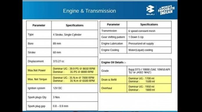 The 2019 Dominar 400 has been under tests for the last many months. Most of its external changes, like upside down forks, more informative instrument cluster, etc were revealed from the spy pics that have surfaced so far. However, its engine specs were not known, uptill now! Leaked document now details all the spec related changes that the motorcycle gets..