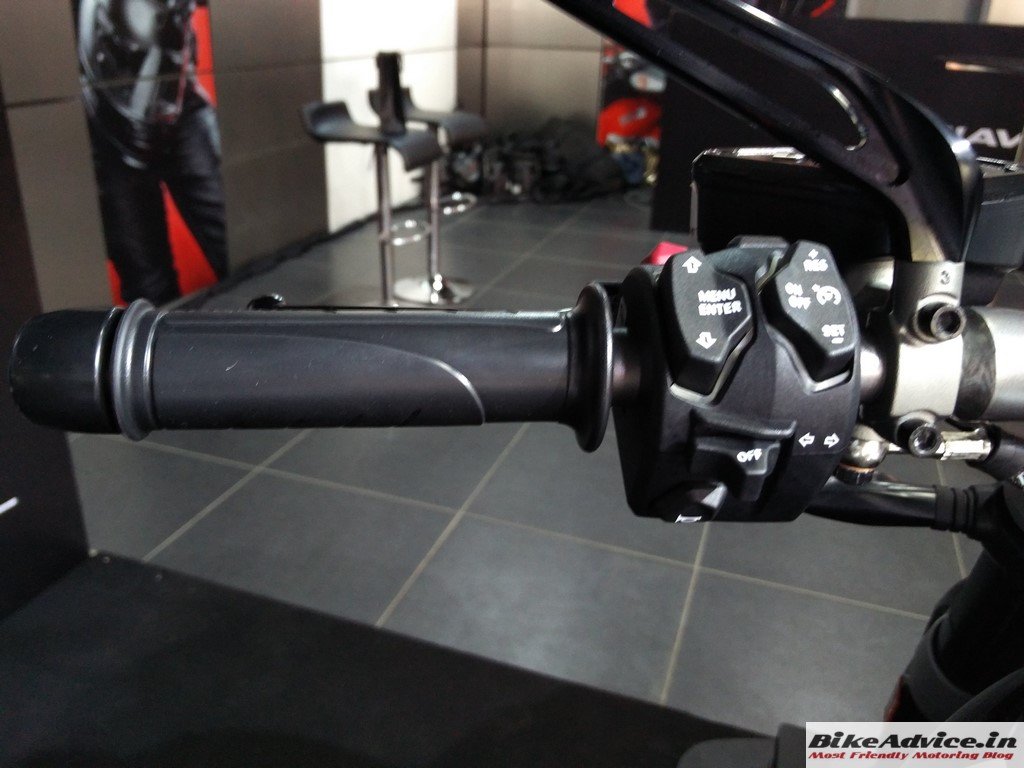 The bike weighs 220 kilos dry while the wet weight stands at 247 kg. The wheelbase stands at 1,615 mm and fuel tank can store 18 litre of petrol. The seat height is a highly accessible 755 mm. Braking duties are administered by twin 320 mm semi-floating discs with radial Brembo monobloc four pot M4-32 callipers in the front. The rear setup includes a single 265 mm two piston calliper. Cornering ABS by Bosch is a standard feature.