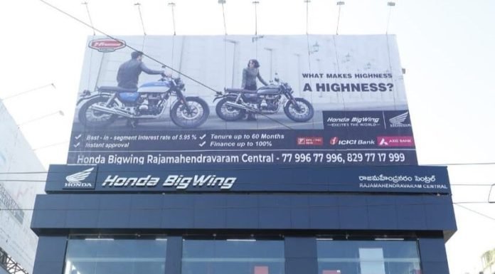 Honda Motorcycles & Scooter India (HMSI) have added another pin on the Indian map with inauguration of their Premium Bike dealership – Honda BigWing – in Rajahmundry, Andhra Pradesh.