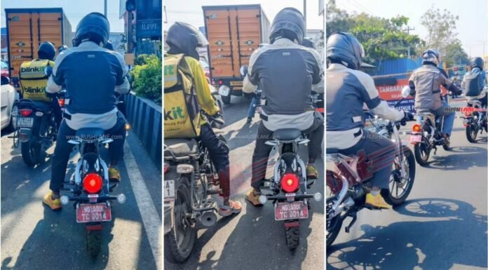 The spy images confirm that production version is quite identical to the concept model, which takes styling cues from the original Flying Flea of 1940s. Some of the design highlights include round LED headlamp, large alloy wheels, belt-drive setup mounted on the right side, Girder front fork, exposed rear frame and minimal body panels.