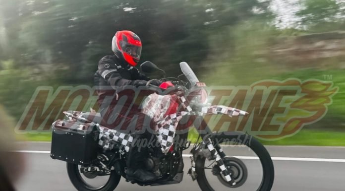This motorcycle looks more complete than before as we can see knuckle guards, flyscreen and final body parts (may be they are even painted red). Addition of luggage carriers (which may be promoted under the company’s moniker) is another hint of the completeness of the product.